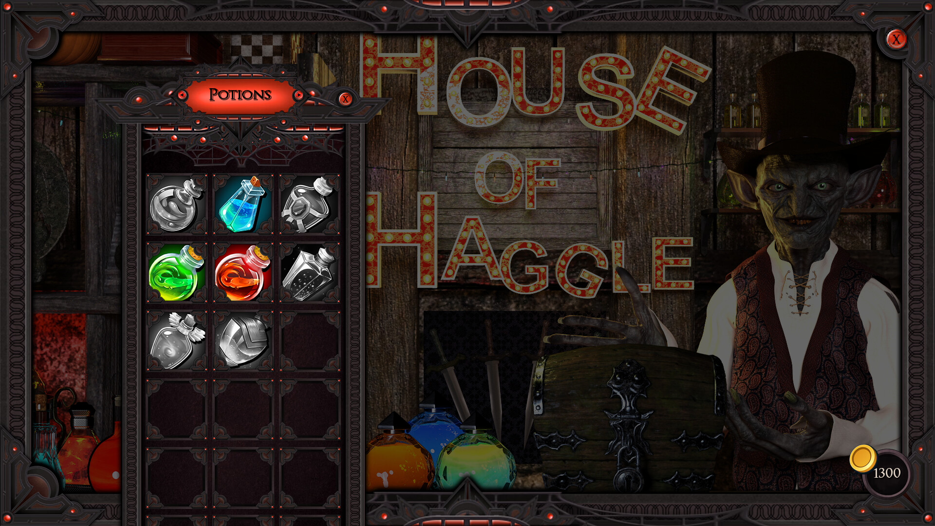 The main gameplay aspect of Game Mode is playing as the fledgling monster hunter, Abby, and navigating through maps. By slaying monsters on your hunts, you will gain gold which you can spend at the House of Haggle, a whimsical shop ran by the sordid hobgoblin, Hobs Hornswaggle. You can buy weapons and potions from him. By utilizing different weapons and attacks you will be able to defeat the myriads of monsters. Some items can even instantly slay a foe, like silver bullets defeating a werewolf. The potions act as stat boosters, giving Absinthe greater abilities to help counteract the creatures’ attacks.